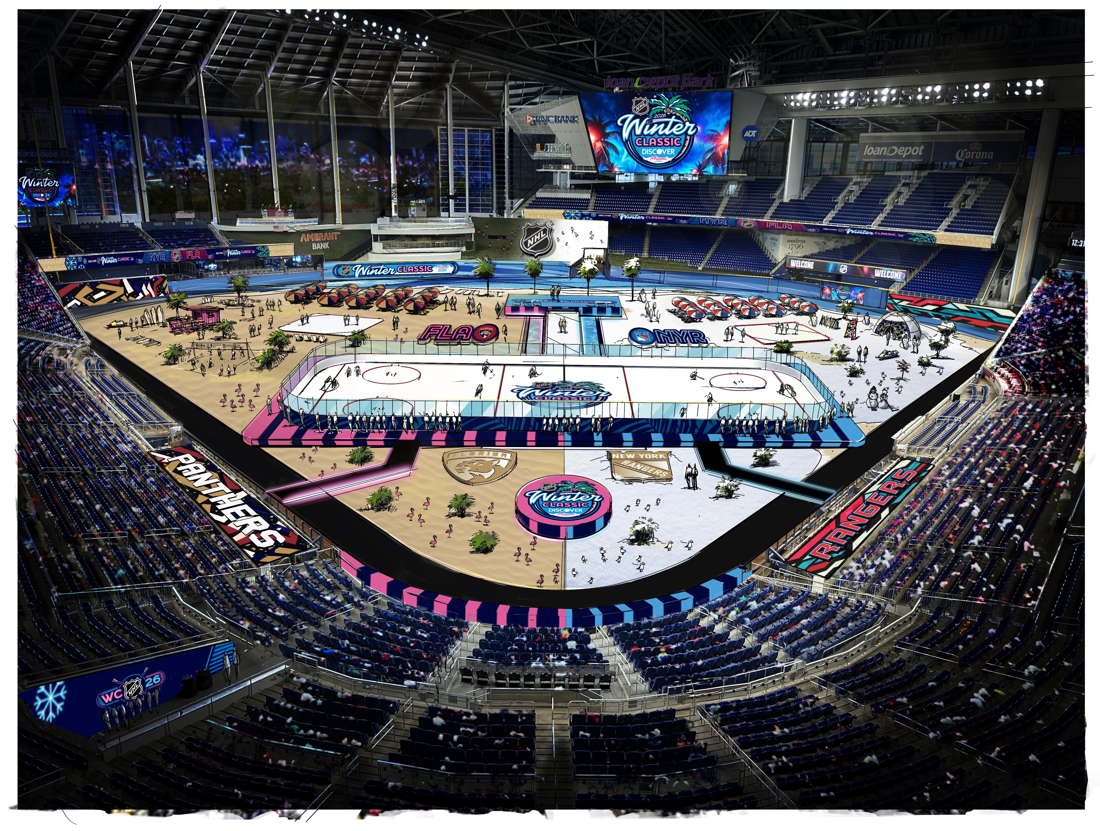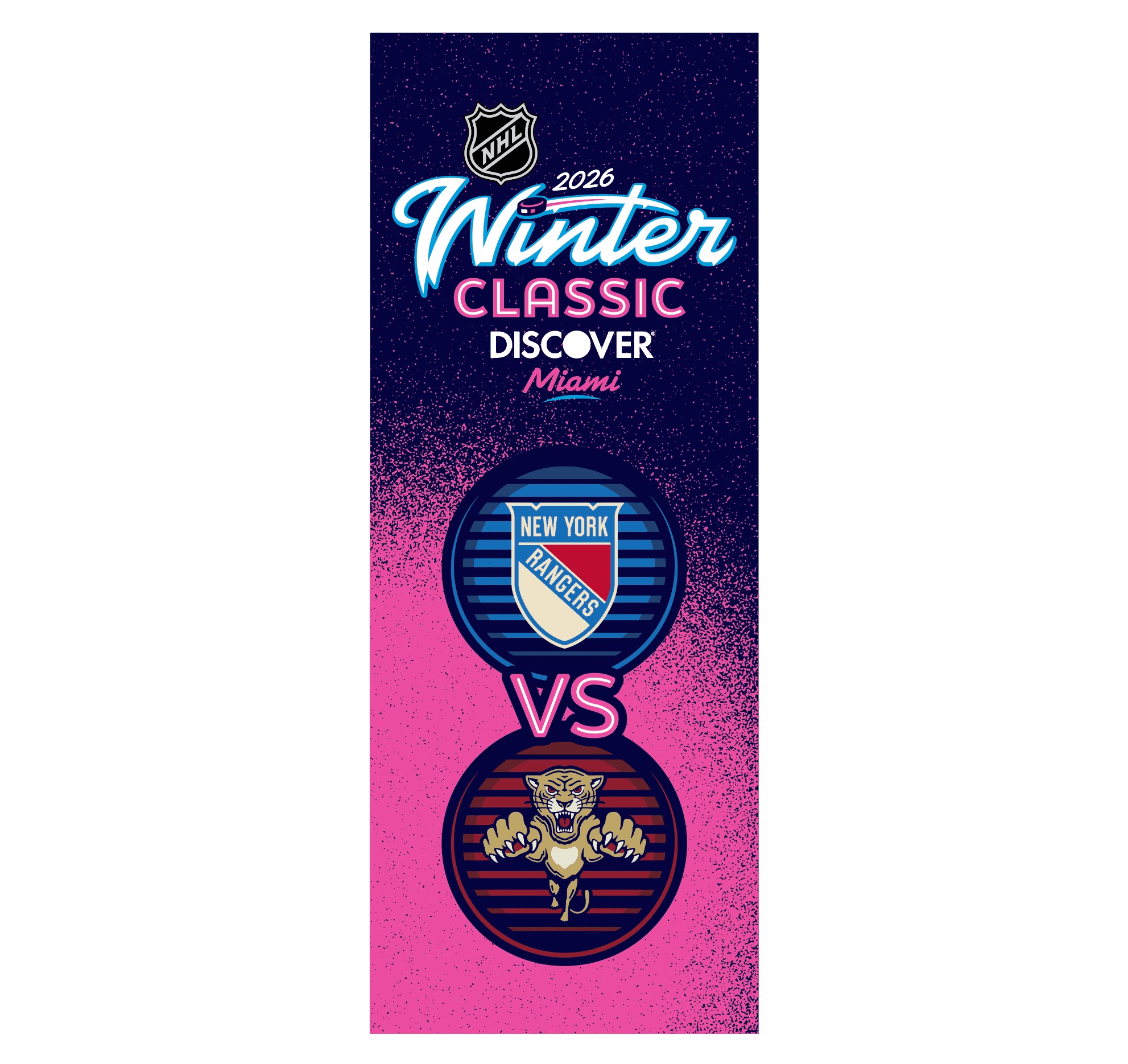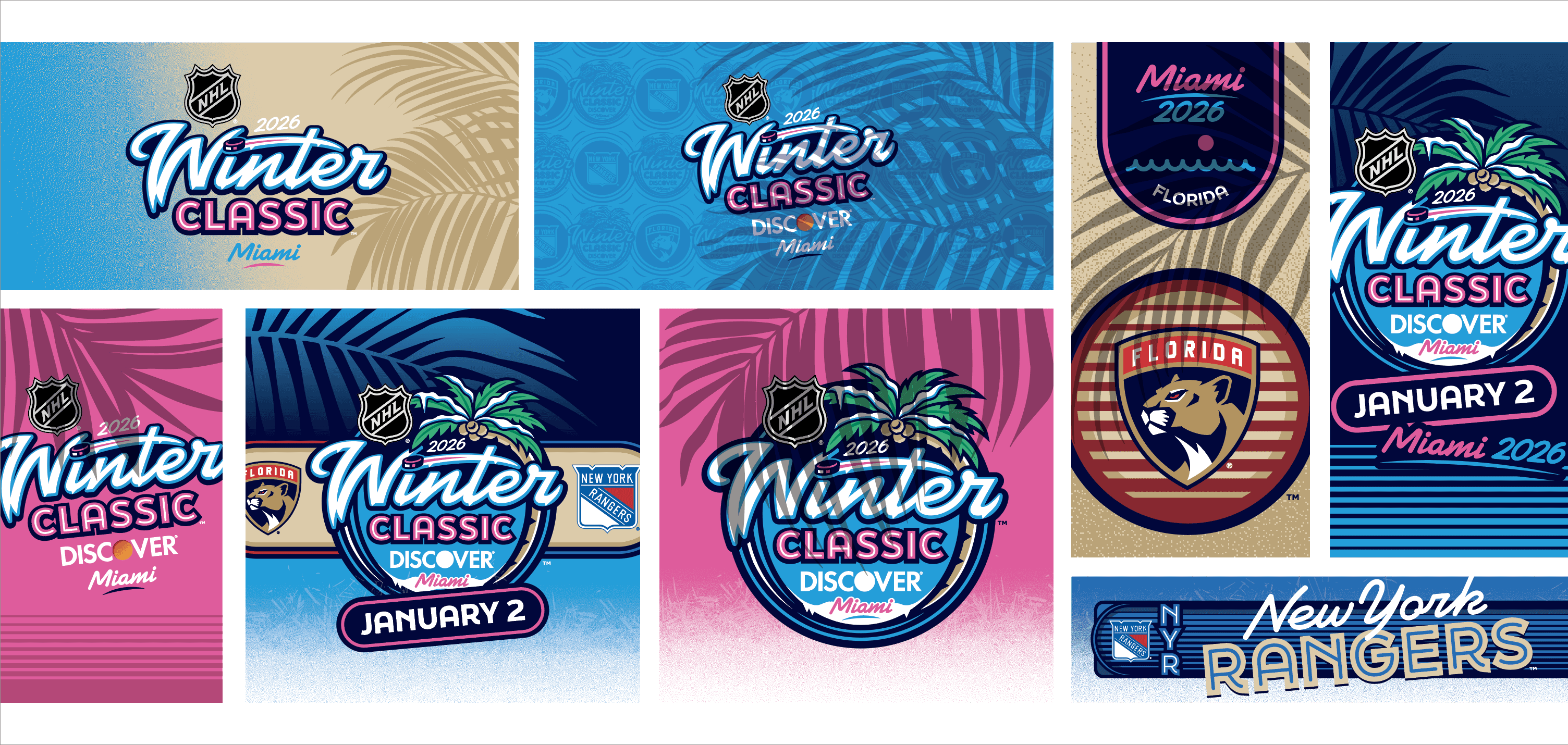 The 2026 NHL Winter Classic was set in Miami with a goal of making the impossible possible. Outdoor hockey in south Florida was an ambitious goal, and my team and I at Elevate were tasked with designing a graphical system that fits the bill. Our work included everything from graphics at NHL hotels, the NHL's New Years Eve Bash, the PreGame event, stadium exterior, stadium suites, concourse, retail locations, and the field itself surrounding the rink.