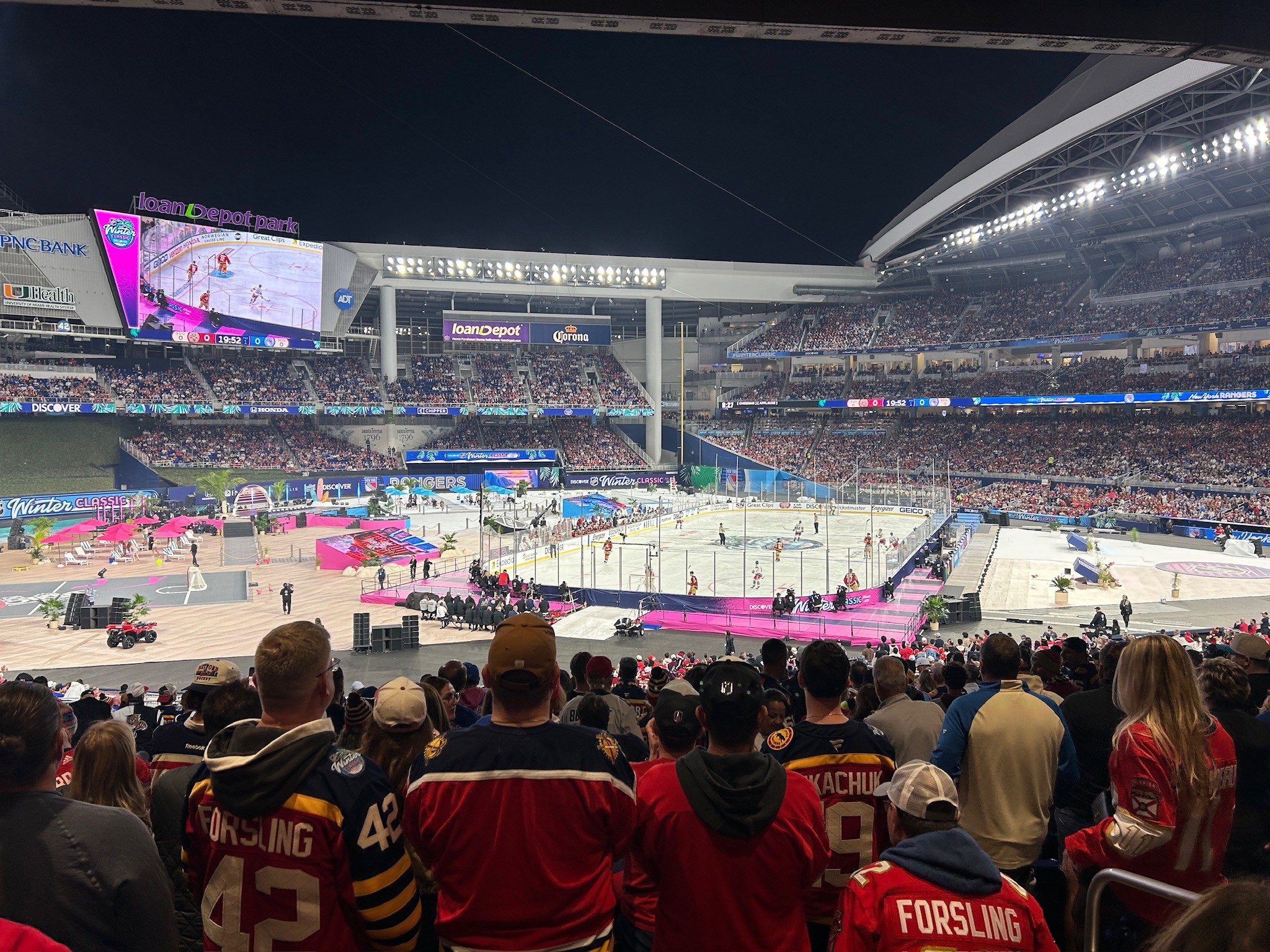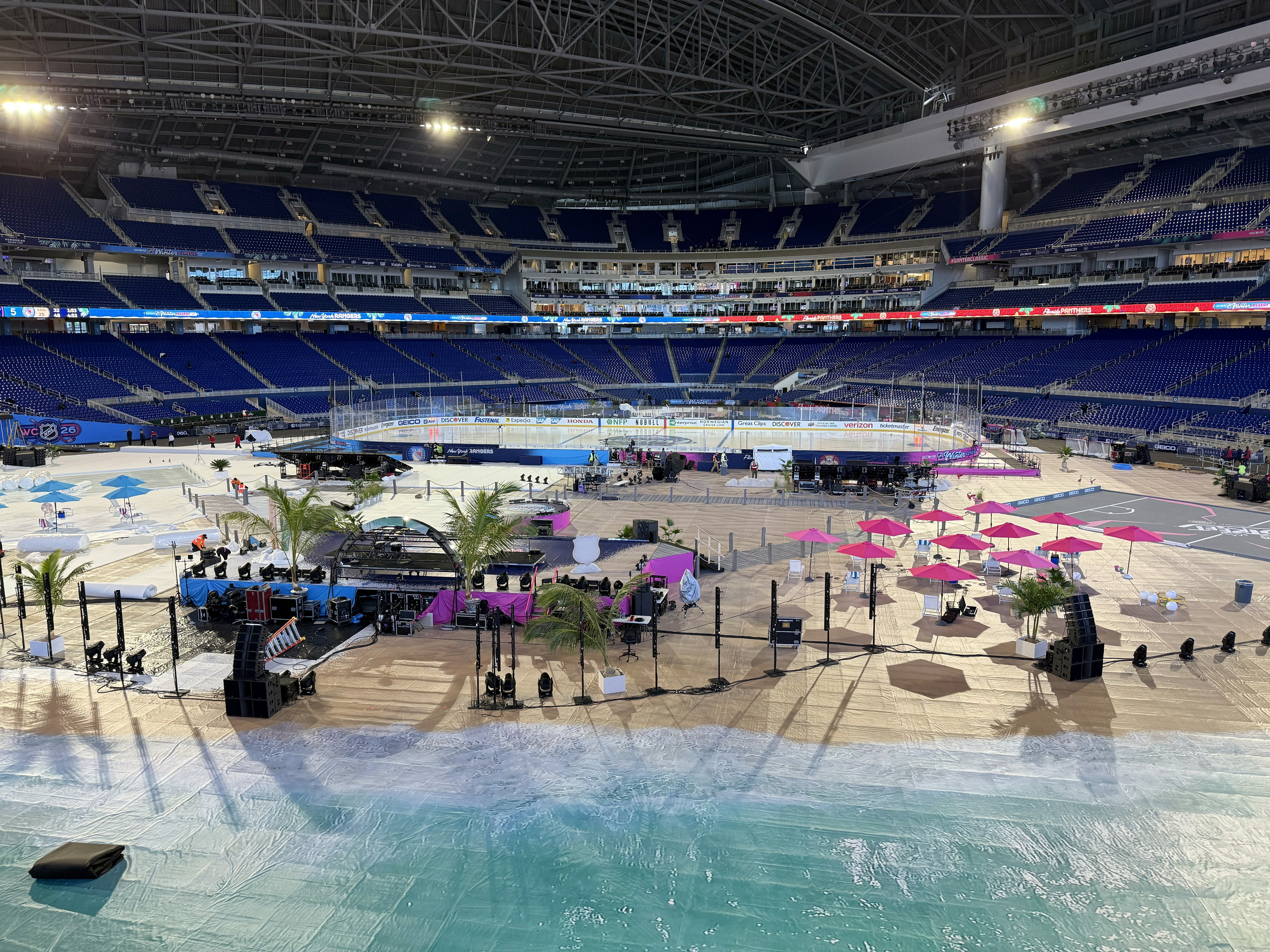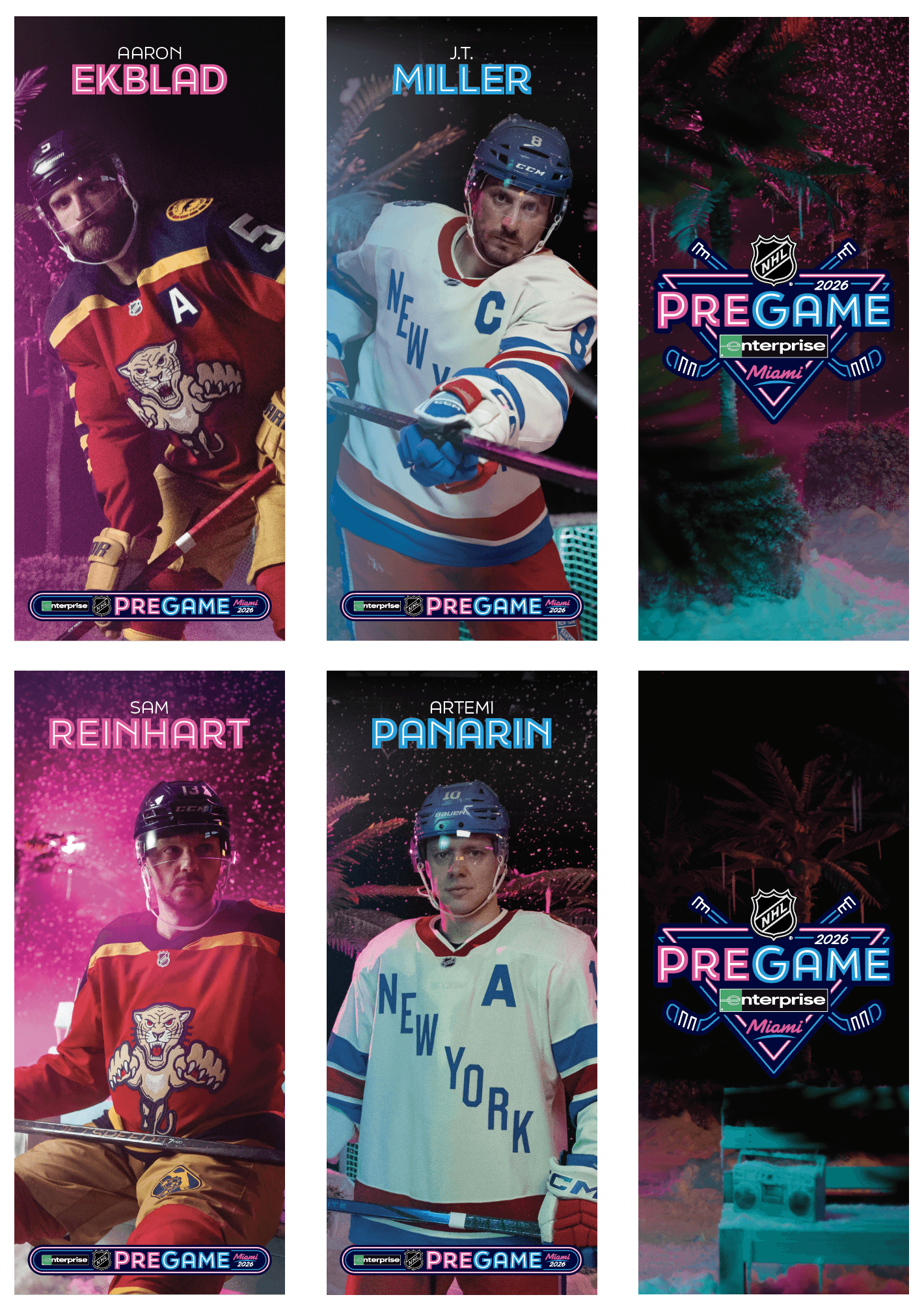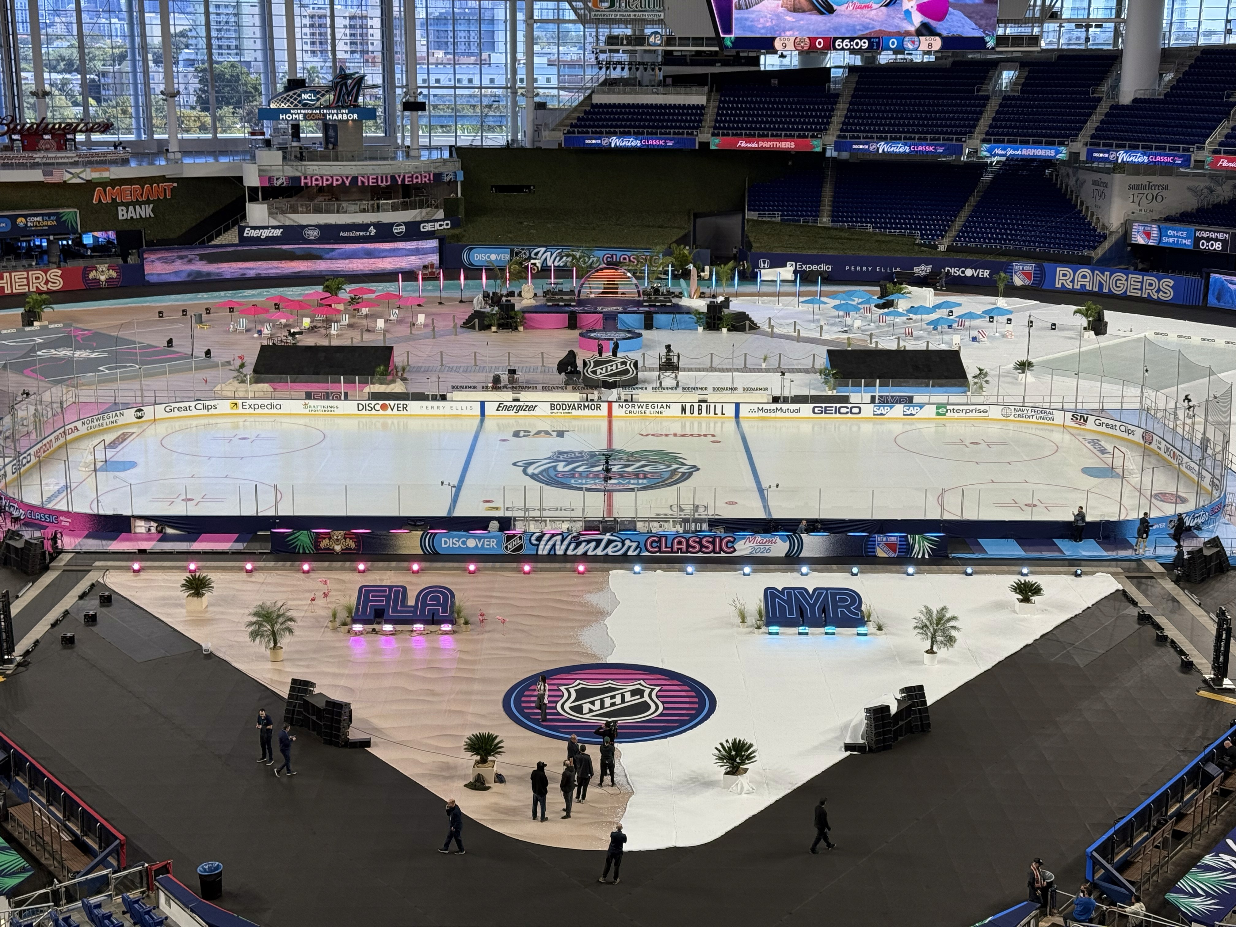 The 2026 NHL Winter Classic was set in Miami with a goal of making the impossible possible. Outdoor hockey in south Florida was an ambitious goal, and my team and I at Elevate were tasked with designing a graphical system that fits the bill. Our work included everything from graphics at NHL hotels, the NHL's New Years Eve Bash, the PreGame event, stadium exterior, stadium suites, concourse, retail locations, and the field itself surrounding the rink.