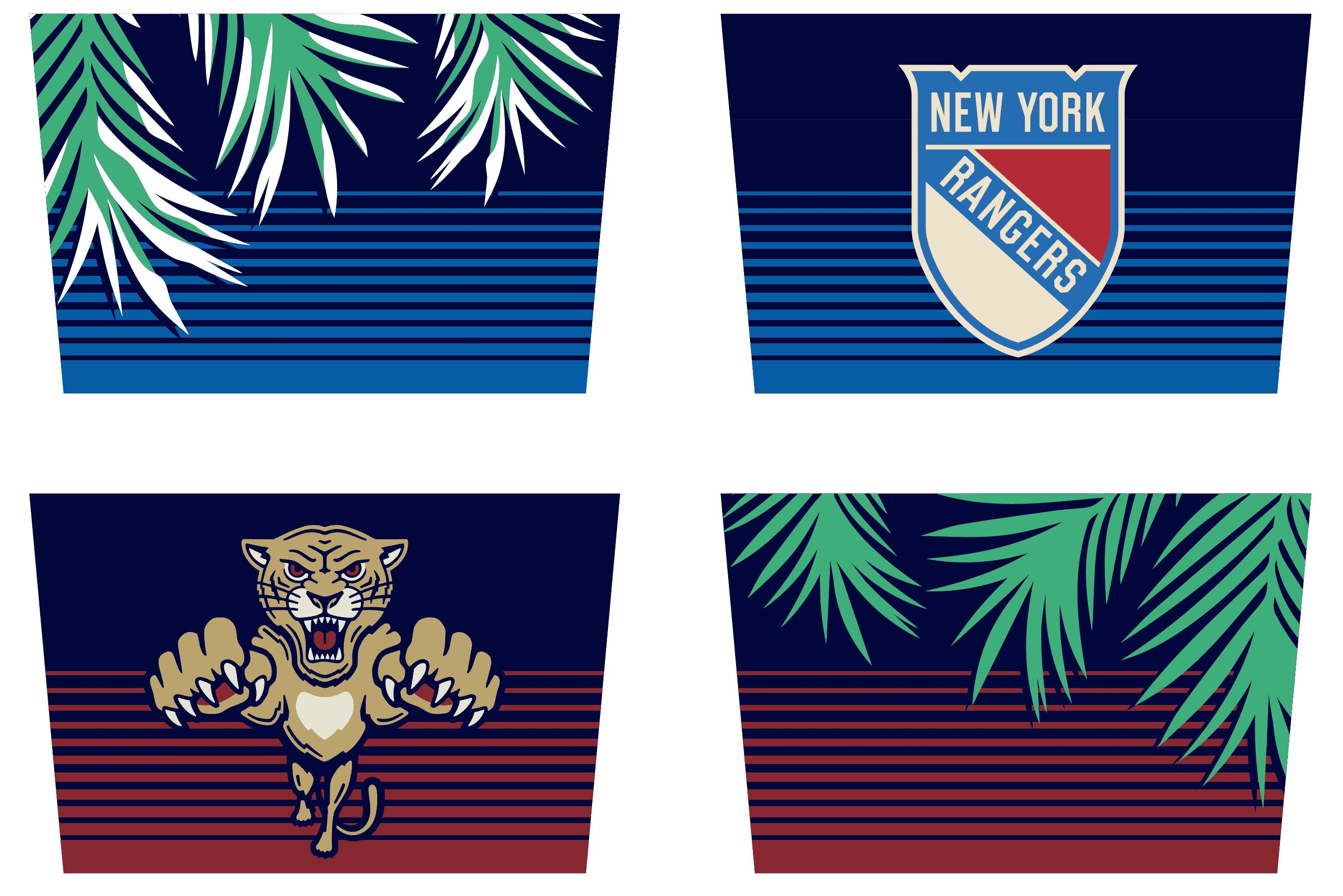 There was lots of iteration through the field design process, working with the NHL to craft visuals that fit the concept and be legible to any seat or camera shot, and adjusting the design and printed footprint to meet their budget.